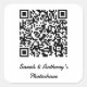 Seu código QR exclusivo e texto personalizado destacam esses adesivos quadrados projetados para compartilhamento de fotos de casamento entre os convidados.