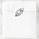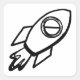 Um esboço preto-e-branco de um foguete voador para cima, com o fogo a sair no final.