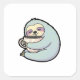 Adesivo Quadrado Sleepy Sloth with Coffee – Cute Cozy Illustration