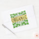 Orgânico: um slogan verde para jardineiros, cozinheiros e comemorações do Dia da Terra, em letras decoradas em maiúsculas contra um fundo de bolota e folhas de carvalho, cercadas por folhas de rolagem.