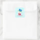 Add a cute sticker to make a fun statement. Tthese cute Snowman cupcake stickers can be personalized with your name, organization or event - make it yours!. The snowman cupcake is wearing a blue top hat with green accents and a lime green neck tie with blue dots. The bottom cupcake wrap paper is red with lavender stripes. An orange carrot makes his nose. The background is a turquoise paint texture on white. This design is original art by Phyllis Dobbs and comes on matching paper napkins and other coordinating products in this store. Fully customizable.