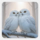 Adesivo Quadrado Snowy Owls On a Winter Branch