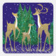 Adesivo Quadrado Snowy Winter Deer in Woded Forest | Azul |