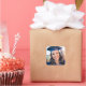 Este adesivo de festa de formatura de tendência apresenta um sofisticado script branco manuscrito sobre uma foto de cheio chic do seu formando. Personalize este adesivo de formando com o seu segundo grau, faculdade ou fotografia universitária atrás dos detalhes do seu mais velho.
