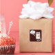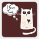 Adorável gato ilustrado segurando um coração de amor com bolha de pensamento que você pode personalizar com seu próprio texto em um fundo burgundy.