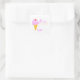 Sorria de Sorvete quadrado. Os autocolantes personalizáveis têm um cone de sorvete rosa de fusão fofinho com uma cereja no topo e a palavra sorri em letras rosa.