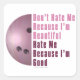Arte bola de boliche Não me Odeio Porque sou Boas t-shirts, presentes e acessórios criados pelo ITD Sports Center apresentam a nossa obra de arte original de meia bola de boliche rosa no lado esquerdo com as palavras cor-de-rosa e rosa escuro no lado direito, Não me odeie porque sou Bonito, Odeio-me Porque sou Bom. Nossos artigos esportivos divertidos e competitivos são presentes de excelente para amantes de bolas de boliche, amantes de bolas de boliche, jogadores de bola de boliche, estrelas de bola de boliche, treinadores de bola de boliche, atletas e amantes de esportes de todas as idades. É tudo divertido e jogos na Imagine isso! Centro de Esportes design!