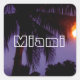 Foto digital de Miami, na praia do Sul, tirada com atmosfera ambiente roxa e lâmpada de rua legal acendendo a palma do coco.