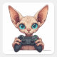Adesivo Quadrado Sphynx Cat Holding Game Controller