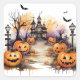 Adesivo Quadrado Spooky Haunted House Pumpkins Halloween