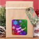 Pau quadrado com uma imagem de flocos de neve bonito, azuis e verdes em um fundo arco-íris de luzes de férias e um sentimento de feriado branco. Veja o convite quadrado correspondente, o confetti e o papel de empacotamento. Veja a coleção inteira do New Year Sticker na categoria CARDS & STICKERS na seção HOLIDAYS.