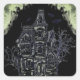 Um pequeno adesivo quadrado mostrado em um assustador impressão de casa assombrado no Halloween. Personalizar este item ou comprar como está. imagem de estoque freepik.com