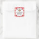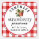 Um morango preserva um adesivo quadrado de presente personalizado caseiro com um design de xadrez de búfalo vermelho.