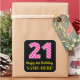 Este design de adesivo quadrado com tema de aniversário alegre apresenta um grande número "21" com uma rosa claro e um padrão de listras cor-de-rosa escuros, juntamente com a mensagem "Happy aniversário de 21 anos," e um nome personalizado. O fundo é preto colorido. Bons, alegres, autocolantes personalizados como este podem ser dados como presente de aniversário, ou usados enquanto embrulham presentes, ou talvez usados como decoração de festas de aniversário quando celebram o vigésimo primeiro aniversário de alguém. [~Z0000578]