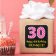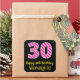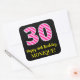 Este alegre design de adesivo quadrado com tema de aniversário apresenta um grande número "30", com um padrão cor-de-rosa escuro e listras de rosa claro. Ele também apresenta a mensagem "Happy aniversário de 30 anos," e um nome personalizável. O fundo é preto colorido. Tímulos divertidos, alegres e personalizados como este podem ser dados como presente de aniversário, ou usados enquanto embrulham presentes/presentes, ou talvez usados como decorações de festa de aniversário quando celebramos o aniversário de 30 anos de alguém. [~Z0000578]