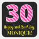 Adesivo Quadrado Stripes Rosa Divertido "30": aniversário de 30 ano