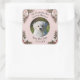 Adesivo Quadrado Sua Foto de Pet, Salve a Data, Rosas Rosa e Pombas