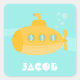 Um adesivo adorável que vem com um desenho de um submarino amarelo com vidraças e bolhas azuis saindo de lado. Fundo das linhas de ondas azuis para ilustrar que o navio oceânico está submerso debaixo d'água. Atraente, alegre e fofo adesivo para crianças que amam o oceano, o mar e os oceanos. Personalize facilmente com o nome da criança. Excelente de anexá-los a livros infantis como pequenas decorações.