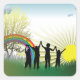 Uma cena de crianças em pé no nascer do cheio e um arco-íris. Esta design parece realmente eficaz nestes adesivos