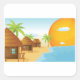 Adesivo Quadrado Sunset de praia tropical com Thatch Huts