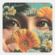 Adesivo Quadrado Surreal Eyes and Flowers with Butterflies