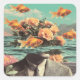 Adesivo Quadrado Surreal Portrait With Goldfish Flowers And Ocean