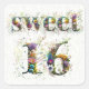 Adesivo Quadrado Sweet 16 Happy Birthday Wildflower Text