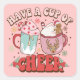Eles ficarão felizes com a tipografia trinchada de 1970, "Tenham uma taça de torcida", com duas canecas felizes e de férias com fundo de rosa claro. As canecas são estilos de inverno e renas, tão fofos com canas doces e pão de gengibre. Ideal para correio ou pacote de presentes.