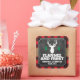 Um fundo de xadrez de búfalos vermelhos contrasta com um painel de quadros fixados por um feixe de madeira sobre este adesivo. A silhueta de buck acentua o topo e sua mensagem segue para dar as boas-vindas aos hóspedes ou obrigado-los por virem a um flanela e geada, florestas de campo, ou caçarem feriados temáticos ou festas de Natal. Pode ser personalizado para qualquer ocasião, incluindo uma festa de aniversário, um cocktail, uma despedida de solteiro ou uma noite de cara, além de uma festa de Natal ou de férias. Disponível com produtos correspondentes.