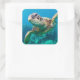 Adesivo Quadrado Tartaruga do Mar Verde Nadando sobre recife de cor
