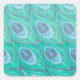 Adesivo Quadrado Teal Peacock Feather Design