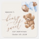 Adicione um toque pessoal à sua celebração de aniversário com estes itens de na moda e festa memoráveis! Design apresenta um ursinho de pelúcia com balões azuis sobre fundo bege.