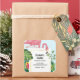 Obrigado de negócios você cola com um flamingo rosa giro e caprichoso. Cercados por folhas tropicais verdes e flores de hibisco vermelhas e amarelas. Um quadro de gradiente dourado em forma de retângulo no centro.