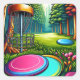 Tocando novamente golfe de disco. Cusa com e águia voando sobre pinheiros, arte ai.