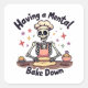 Traga as risadas para a cozinha com esta design de 'Assar Mental Abaixo' com um esqueleto engraçado, esta design é perfeita para fazer amantes. ideia excelente para feriados ou qualquer pessoa que goste de misturar humor e assar.
