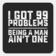 Adesivo Quadrado Tenho 99 problemas sendo um homem não um