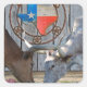 Arte de Ferro Molhada com um mapa metálico do Texas com cores de bandeira e uma estrela solitária. Com dois palangre pairando no primeiro plano.