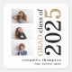 Moderno 3 fotos Douradas Texto Preto 2023 Graduação. Um design moderno com tipografia de na moda e 3 fotos para o seu formando e correio com texto girado e para o lado direito em preto e ouro. Personalize facilmente o nome do formando e o segundo grau. Substitua as fotos nas modelos por suas.