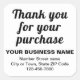 Obrigado pela sua compra, uma mensagem para agradecer a compra do seu cliente. Adesivo personalizável que pode colocar o nome da sua empresa e com a mensagem Obrigado pela sua compra. Designs são textos pretos sobre fundo branco e forma quadrada. Para personalizar este adesivo, digite o nome da sua empresa ou empresa, endereço e número de telefone e verifique a aparência. Se a aparência lhe agrada, você pode colocar seu pedido agora. Se precisar redimensionar e mover os textos para o ajustado neste adesivo ou em outros tamanhos que você escolher, mude na ferramenta design. Você também pode fazer outras alterações na ferramenta design de acordo com a aparência deste adesivo que você prefere, como alterar a cor do plano de fundo, a cor da fonte e o estilo da fonte. Fique à vontade para apreciar a compra do seu cliente. Adicione que você também pode usar como material de marketing para anunciar sua empresa, promover seu nome de marca ou criar reconhecimento de nome de marca.