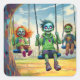 Adesivo Quadrado Three Zombie Kids on Swings in Fall Park