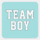 Os adesivos do Team Boy para os convidados vestirem a uma festa de revelação de gênero para bebês. Azul aquático com sotaques brancos e cinzas.