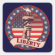 Renderização clássica do estilo poster da Tocha da Liberdade com a bandeira dos EUA, redonda. Detalhe da estátua da Liberdade.