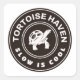 É Legal uma ilustração digital de uma tartaruga num logótipo circular com a legenda Tortoise Haven Slow.