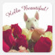 Adesivo Quadrado Touro terrier com saudação de rosas - Olá Bela