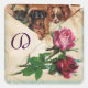 ADESIVO QUADRADO TRÊS CÃES COM MONOGRAMA DE ROSAS