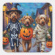 Adesivo Quadrado Trick ou Tratando em Figurinos de Halloween