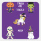 ADESIVO QUADRADO "TRICK OU TRATAR VESTIDO PERSONALIZADO