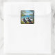 Adesivo Quadrado Trio Costeiro: Três Puffins na Praia em Óleos