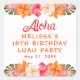 Adesivo Quadrado Tropical Aloha Luau Floral Birthday Party