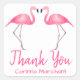 Adesivo Quadrado Tropical Obrigado Chá de casamento Rosa Flamingos